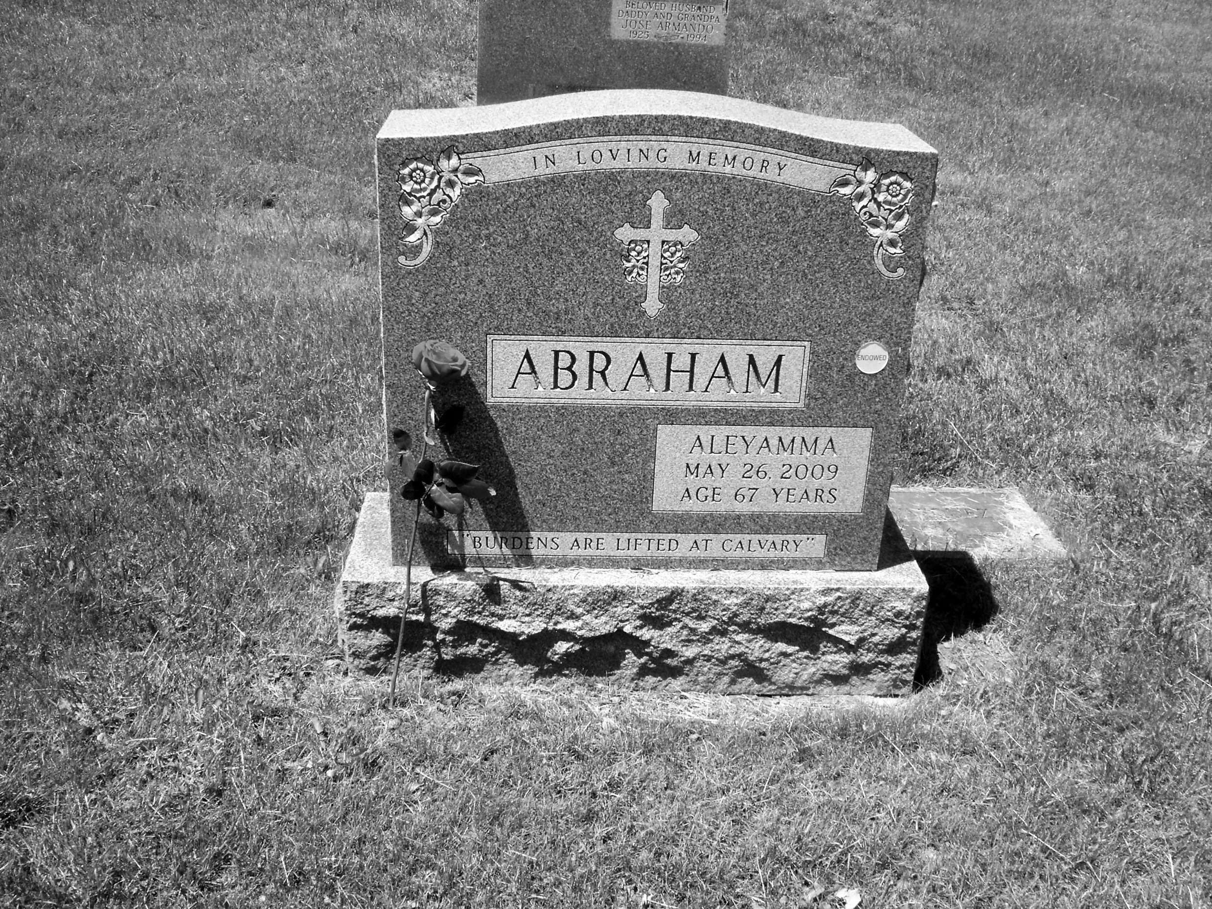 I have nothing to give in return for Baby's unselfishness. My assets are the apartment which we had purchased in America and the house we had built with the name 'Evangel' on Mannanthala stadium road. The 3,000 square feet house has been donated to the Orthodox Church to keep as a monument Aleyamma Abraham Memorial after my death. The amount received from the sales of the apartment in America was also donated to the Karunya Guidance Centre under the Orthodox Church for another memorial for Baby.